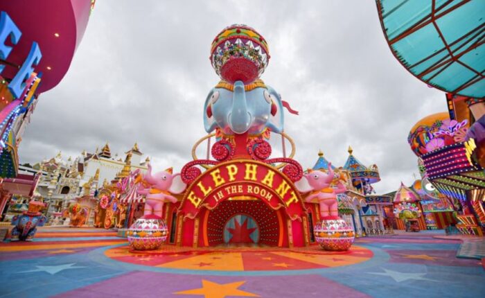 ลานวังไอยรา (The Palace Court): พื้นที่ที่มีการแสดงแสงสีเสียง “ไอยรา สเปคตาคิวลาร์” พร้อมบริการนั่งช้างและให้อาหารช้าง.